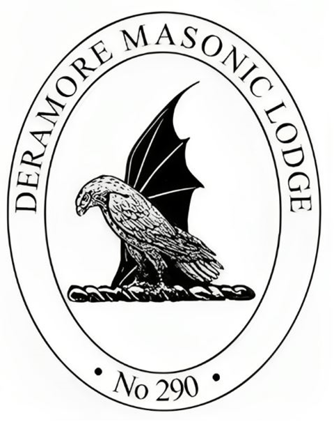 The Bat’s wing of the Bateson and the Falcon of de Yarburgh come together in the Crest of Deramore Masonic Lodge No. 290.